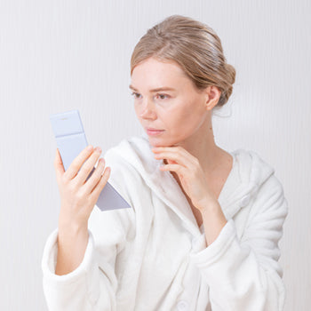 HORIUCHI MIRRORは、くすみの原因となる鉄分をより多く取り除いた透明度の高いガラスと、色の再現性が高い反射金属との組み合わせにより、本来の姿をありのままに映し出す日本で特許を取得した鏡です。肌の色が鮮明に映ることで、自分に合ったファンデーションの色味がわかり、メイクの仕上がりが格段よくなるため、美容業界のプロの方々にも支持されています。 フォールディングミラーはメイクのプロも愛用する、持ち運びに便利な折りたたみタイプのスリムなメイクミラーです。 特徴①スリムでコンパクト 従来の折立ミラーよりも薄いので、場所を取らずコンパクトに 収納できます。 特徴②フレームレス ミラーの映る範囲を最大にしたフレームレス設計。ミラーの側面は研磨加工済み 特徴③フリーアングル ミラーの角度を自由に調整できます 特徴④用途に合わせて選べるサイズ カードサイズのSから、頭から胸まで映す大きなサイズのLLまで選べます。 Sサイズはカードケースサイズで小さくコンパクト。外出先でメイクチェックするのに最適です。 サイズ 8×10.8×0.7cm ミラーサイズ 7.2×9.9cm 素材 PVC・ガラスミラー 重量約70g 日本製