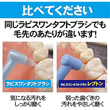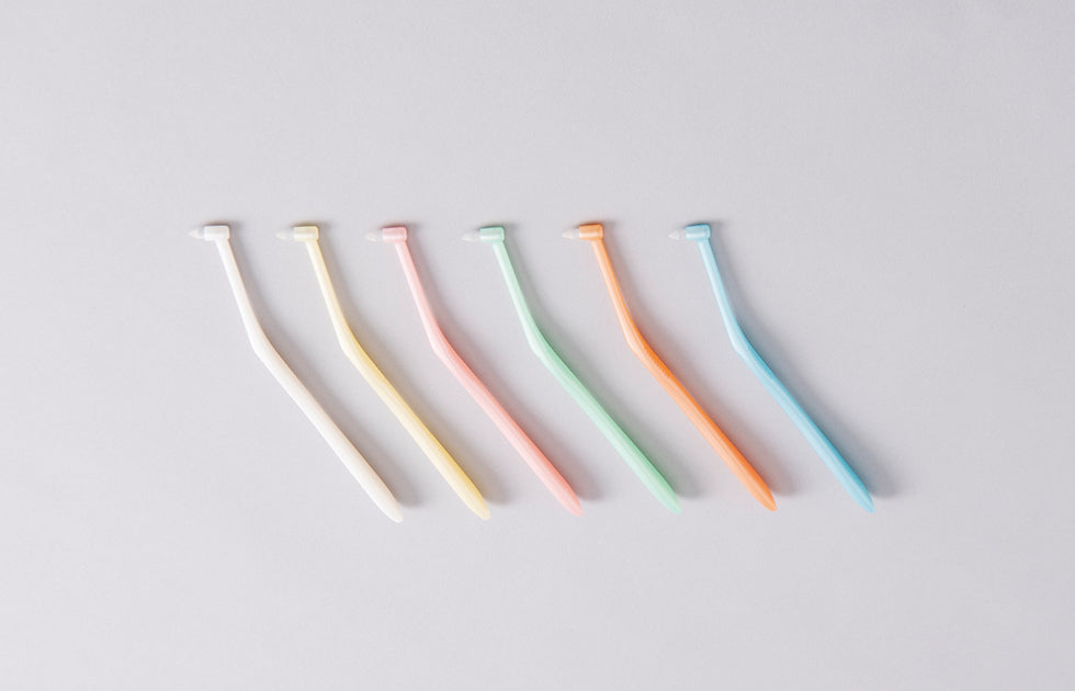 世界のトップメーカー、デュポン社製の高品質ナイロン毛を使用しています。毛のカット具合やハンドル・ヘッドの角度など、歯科医院様と共に考えたワンタフトです。歯間部分、矯正部分の清掃に優れています。奥歯までしっかり届きます。お子様の細部の仕上げ磨きにも使っていただけます。