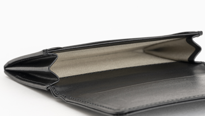 本体の厚みを薄く仕上げているので、スーツのポケットにスッと収まり、表に響かないスリム設計で名刺交換もスマートに。
