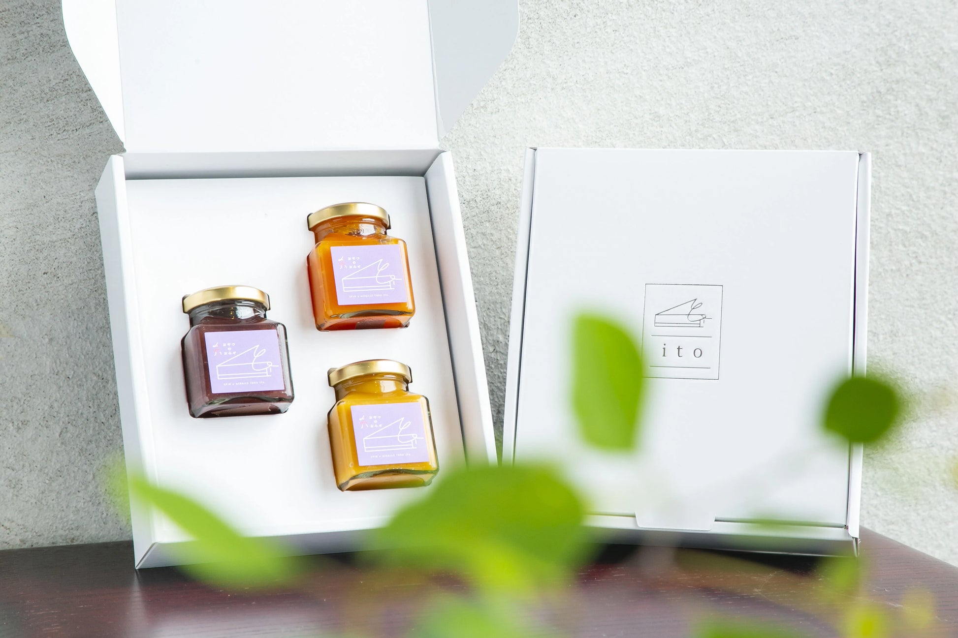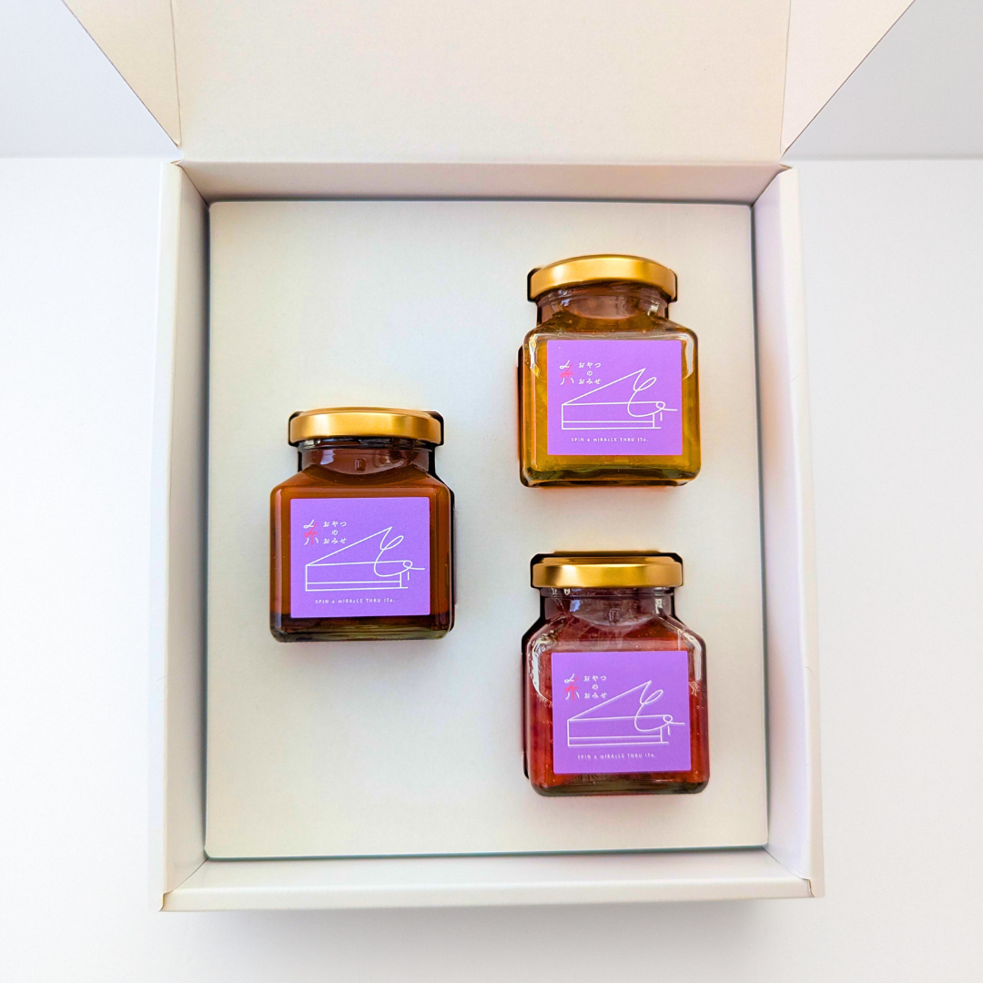 內含 3 罐時令果醬的禮品組。這是一個“超值的豪華套裝”,您可以在其中比較我們原創的水果和蔬菜果醬的味道。