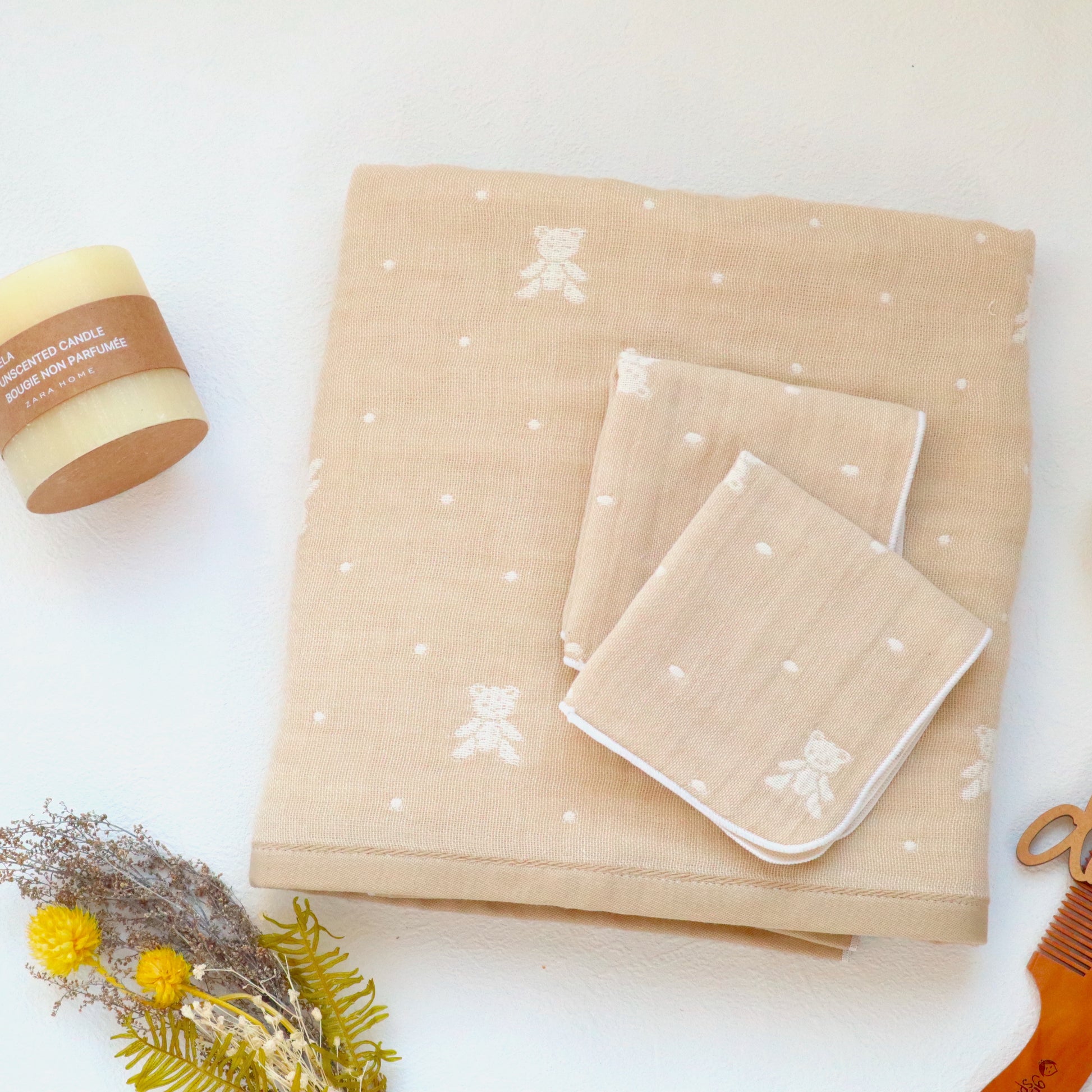 具有出色的吸水性和速乾性,可輕柔包裹出汗寶寶的肌膚。即使在兒童嬌嫩敏感的皮膚上,您也可以放心使用。輕薄易乾,適合夏天小睡。